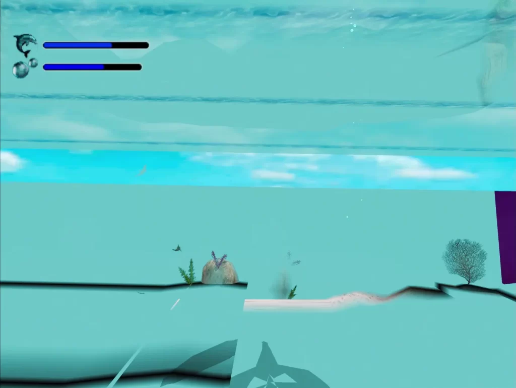 Emulated ROM corruption of the Sega DreamCast game “Ecco the Dolphin: Defender of the Future” using a beta-version of Real-Time Corruptor (RTC)