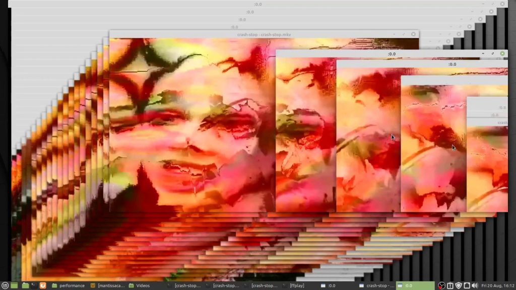 Using the desktop and ffplay and ffmpeg to create a feedback loop between movable windows and pre-prepared video.